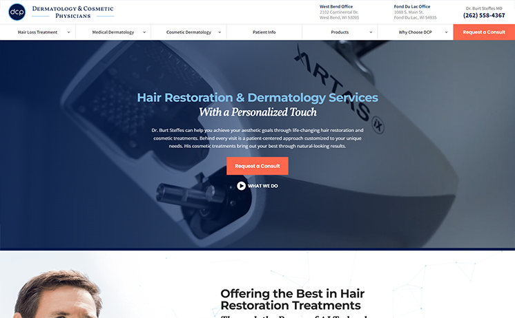 DCP came to iNET wanting to stand out in the hair loss treatment industry. Our SEO specialists focused on marketing DCP’s unique offerings by targeting hair loss treatment queries to emphasize their revolutionary ARTAS Robotic Hair Transplants. We positioned their website in search results, expanding DCP’s reach beyond Southeastern Wisconsin. Now, with offices in West Bend and Fon Du Lac, Wisconsin, Dr. Steffes is set up to continue servicing more clients from the US and worldwide.
