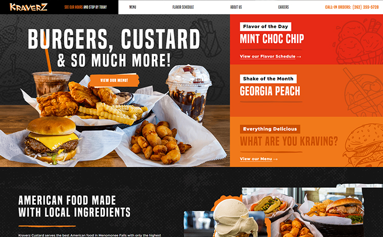 We put together exactly what the folks at Kraverz were looking for. Our designers put together a sleek and practical design that features an updating custard flavor list, an interactive menu, and a dense photo gallery. The site launched and Kraverz quickly began to see an increase in traffic to their restaurant.
