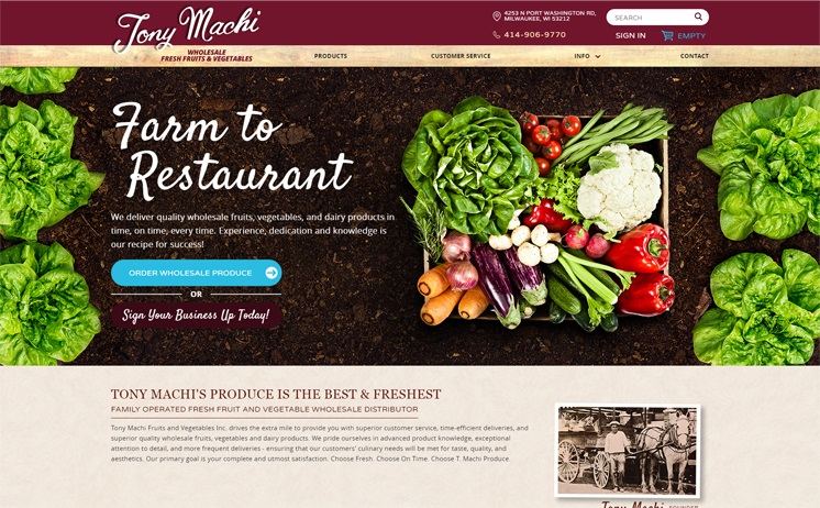 Where better to buy your fruits, veggies and dairy than from a family-owned wholesale producer who brings produce right to your front door? Tony Machi has been family owned and operated since 1891 and had no problem growing the most delicious produce around but needed to get their delicious selection in the hands of more Wisconsinites. A mobile-responsive site filled with professional copywriting & a healthy dose of SEO gets Tony Machi's name in front of individuals and wholesale representatives.