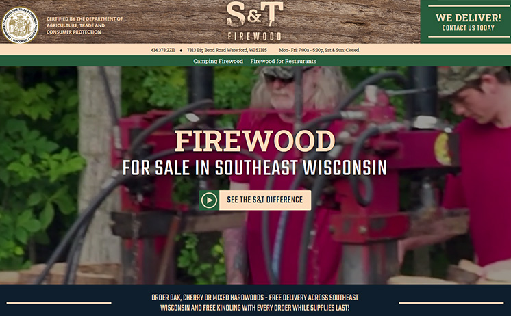 Clear, concise content by iNET Web copywriters lets prospective customers know not only what S&T Firewood offers, but also why they are the best choice for firewood in southeast Wisconsin.